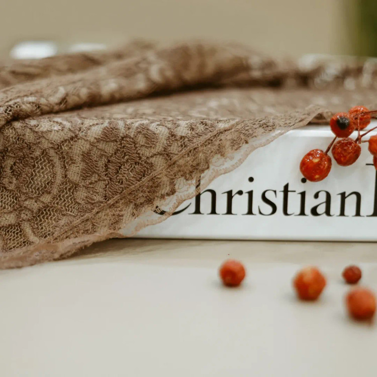 مینی اسکارف دانتل دور دوزی شده طرح گلدار