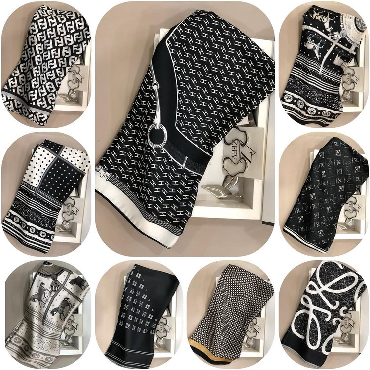 مینی اسکارف ایریشمی طرح های متفاوت سفید و مشکی